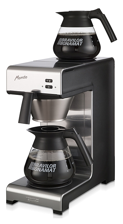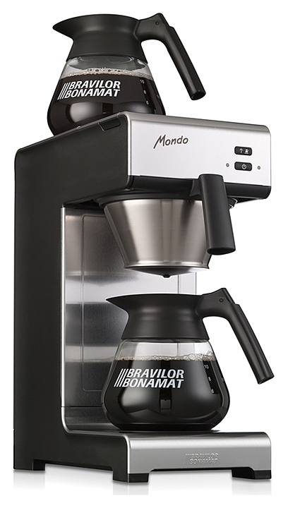 Заливная кофеварка Bravilor Bonamat Mondo используется на предприятиях общественного питания и торговли для приготовления фильтрованного кофе. Модель оснащена системой кофеварения, 2 саморегулируемыми конфорками, которые поддерживают оптимальную температуру кофе, индикаторами готовности кофе и удаления накипи и LED-подсветкой. Корпус выполнен из нержавеющей стали.