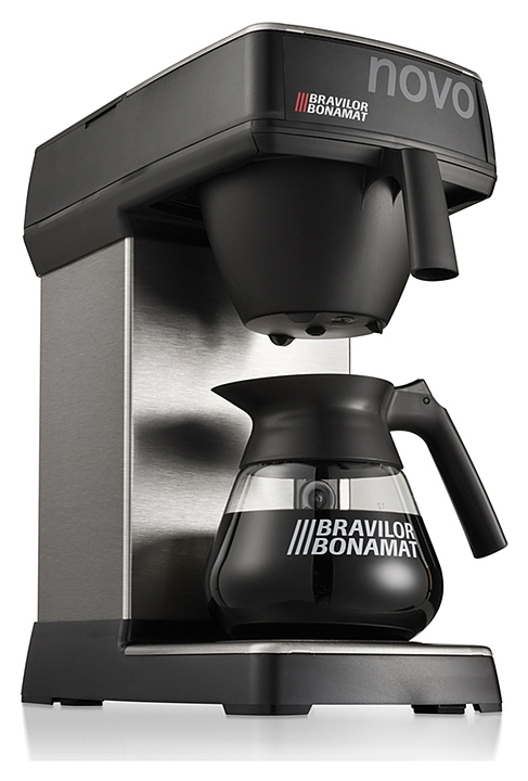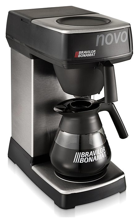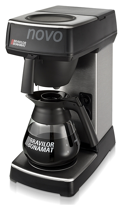 Заливная кофеварка Bravilor Bonamat Novo NEW используется на предприятиях общественного питания и торговли для приготовления фильтрованного кофе. Модель оснащена системой кофеварения и 2 саморегулируемыми плитами нагрева дна, которые поддерживают оптимальную температуру кофе. Корпус выполнен из высококачественной нержавеющей стали, черные детали — из синтетических материалов.