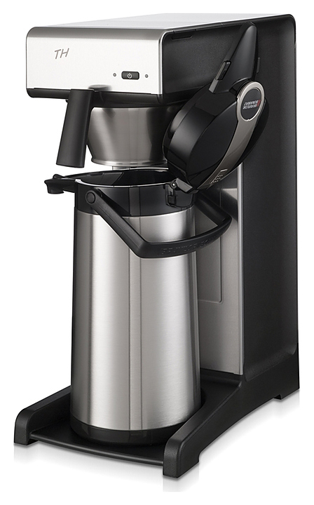 Заливная кофеварка Bravilor Bonamat TH NEW используется на предприятиях общественного питания и торговли для приготовления фильтрованного кофе непосредственно в термос Furento или Advanta. Модель оснащена системой кофеварения и индикаторами готовности кофе и удаления накипи. Корпус выполнен из высококачественной нержавеющей стали, черные детали — из синтетических материалов.