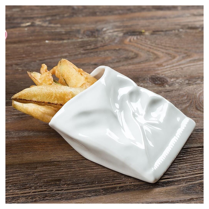 Конверт для картошки фри P.L. Proff Cuisine 81223267 «Мятый» предназначен для профессионального использования в ресторанах. Посуда изготавливается из профессионального твердого фарфора.