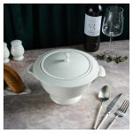 Супница Noble Luxe 81222225 предназначена для профессионального использования в кафе и ресторанах. Модель оснащена крышкой и 2 ручками. Посуда подходит для использования в СВЧ-печи и мытья в посудомоечной машине. Изделие выполнено из фарфора, который отличается устойчивостью к механическому воздействию и химическим веществам, высокой теплоемкостью, безопасностью для здоровья и гигиеничностью.