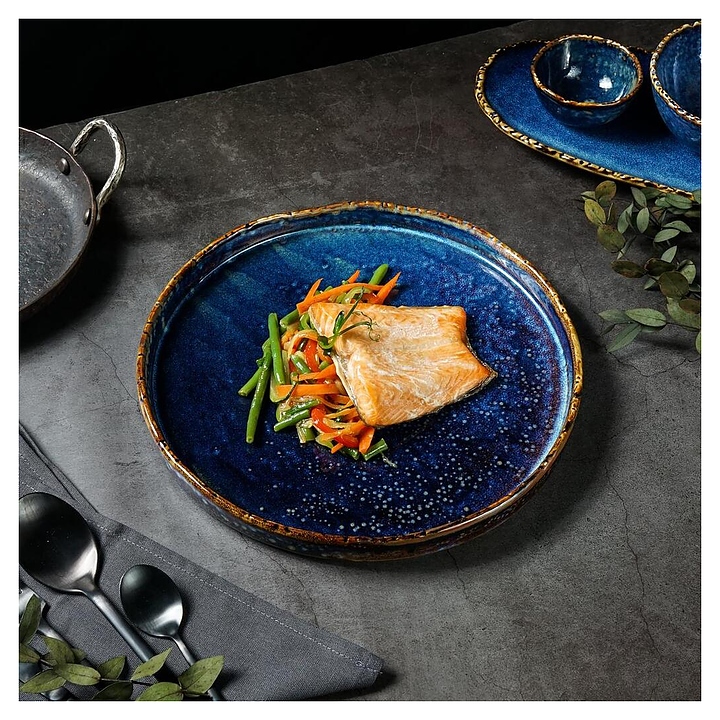 Тарелка с бортом P.L. Proff Cuisine Aqua Blue 81222273 используется на предприятиях общественного питания. Посуду можно мыть в посудомоечной машине и применять в микроволновой печи. Изделие выполнено из фарфора, который отличается устойчивостью к механическому воздействию и химическим веществам, высокой теплоемкостью, безопасностью для здоровья и гигиеничностью.
