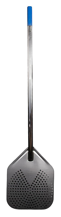 Лопата P.L. Proff Cuisine 81240826 используется для загрузки пиццы в печь на предприятиях общественного питания и торговли. Рабочая часть выполнена из перфорированного алюминия, ручка — из нержавеющей стали.