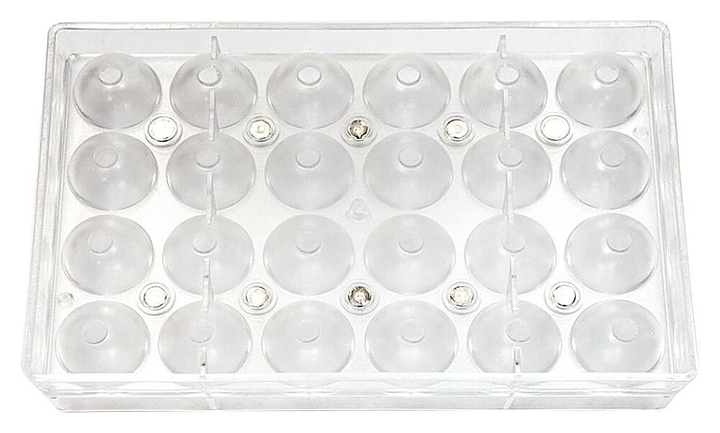 Форма для шоколада P.L. Proff Cuisine 73038050 «Сфера» используется в пекарнях и кондитерских, на предприятиях пищевой промышленности и общественного питания для приготовления фигурок из шоколада или мармелада. Модель оснащена магнитом. Изделие выполнено из поликарбоната.