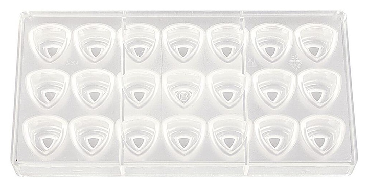 Форма для шоколада P.L. Proff Cuisine 73038016 «Треугольник» используется в пекарнях и кондитерских, на предприятиях пищевой промышленности и общественного питания для приготовления фигурок из шоколада или мармелада. Изделие выполнено из поликарбоната.