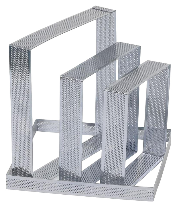 Квадратная перфорированная форма P.L. Proff Cuisine 81240239 используется на предприятиях общественного питания и торговли, в частных домах и квартирах для выпекания кондитерских изделий в ротационных, хлебопекарных и конвекционных печах, пароконвектоматах, жарочных и духовых шкафах, а также для составления десертов, салатов и других блюд, состоящих из нескольких слоев. Изделие выполнено из нержавеющей стали.
