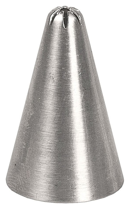 Кондитерская насадка P.L. Proff Cuisine 81006708 «Закрытая звезда» используется совместно с кондитерскими мешками на предприятиях общественного питания и торговли, в частных домах и квартирах для декорирования готовых кондитерских изделий взбитыми сливками и кремом, готовых блюд майонезом и другими густыми соусами. Изделие выполнено из металла.