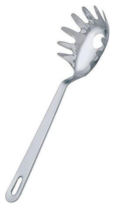 Ложка для спагетти P.L. Proff Cuisine 81240159 используется на предприятиях общественного питания и торговли, в частных домах и квартирах для разделения спагетти и других макаронных изделий во время варки, а также для доставания их из горячей воды после окончания процесса готовки. Изделие выполнено из нержавеющей стали.