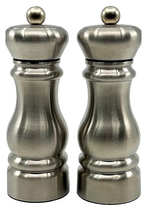 Набор мельниц для перца и соли P.L. Proff Cuisine 81279094 используется на предприятиях общественного питания и торговли для измельчения перца в виде горошка, крупных кристаллов морской соли и других специй для их последующего добавления в блюда или при сервировке стола. Изделия выполнены из нержавеющей стали.