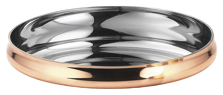 Блюдо P.L. Proff Cuisine 81290236 используется на предприятиях общественного питания и торговли, в частных домах и квартирах для сервировки и подачи различных блюд на стол. Модель имеет круглую форму. Изделие выполнено из нержавеющей стали с медным покрытием.