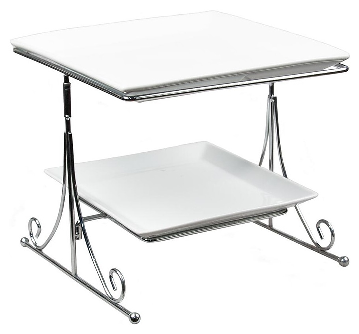 Этажерка P.L. Proff Cuisine 81223500 используется на предприятиях общественного питания и торговли, в барах, ресторанах и кафе для выкладки сыров, колбас, мясных и других видов продуктов. Модель имеет 2 яруса. Основание выполнено из металла, блюда — из фарфора.