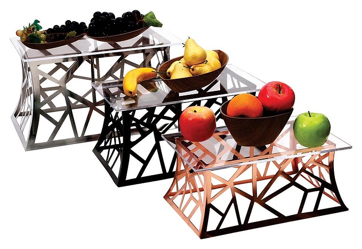 Фуршетная подставка P.L. Proff Cuisine 81290017 используется в процессе сервировки шведских столов, на банкетах и фуршетах для размещения напитков и бокалов, порционных закусок, фруктов, тарталеток и десертов. Изделие выполнено из металла.