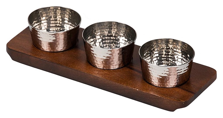 Соусники P.L. Proff Cuisine 81241065 используются на предприятиях общественного питания и торговли, в частных домах и квартирах для подачи широкого спектра блюд. Емкости выполнены из нержавеющей стали, подставка — из темного дерева.