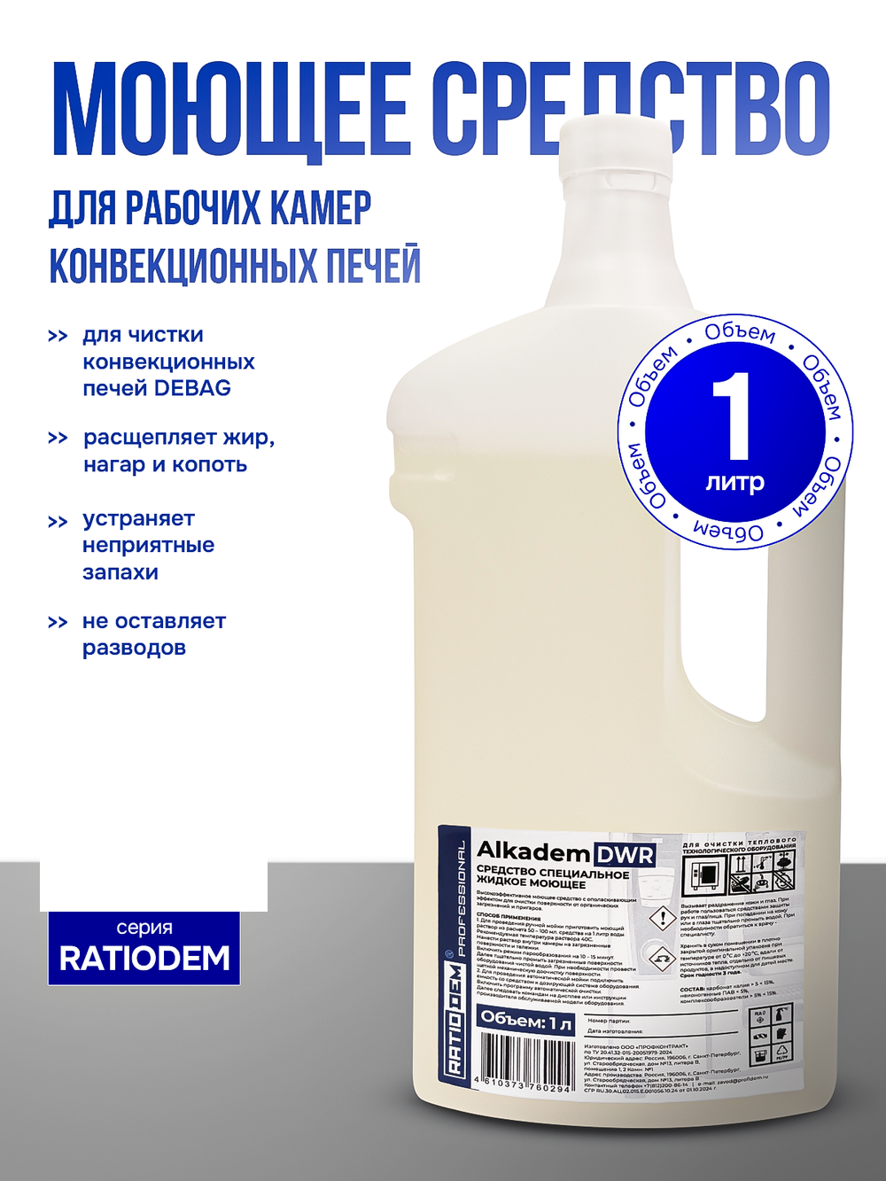 Средство для рабочих поверхностей теплового оборудования RatioDem DWR — 1 л (4 шт.)