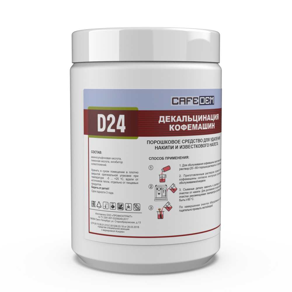 Средство для декальцинации кофемашин CAFEDEM D24 1 кг (Порошковое средство Отечественное сырье Банка 1,0 кг)