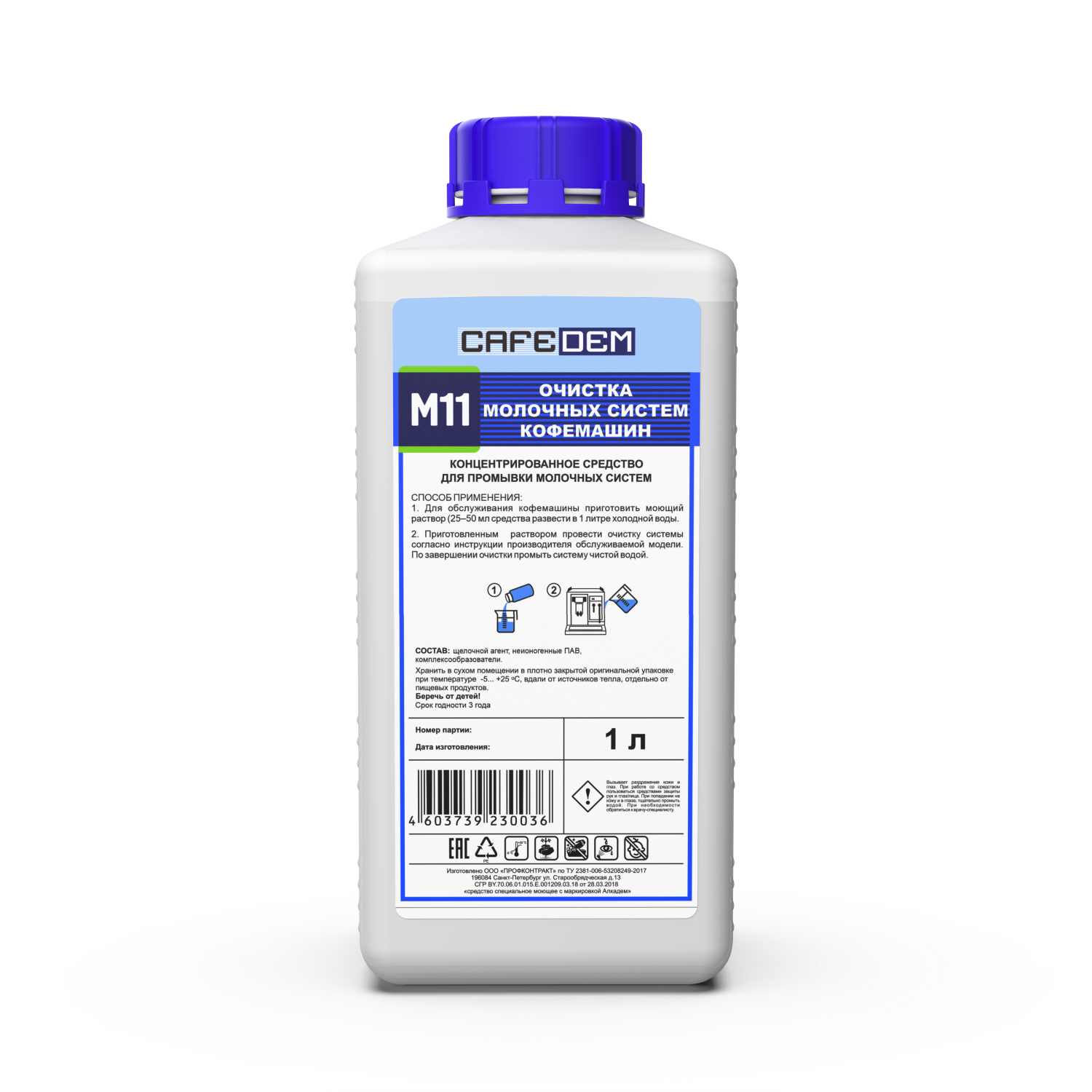 Средство для очистки молочных систем кофемашин (щелочное) CAFEDEM M11 (Жидкое моющее средство Флакон 1 л)