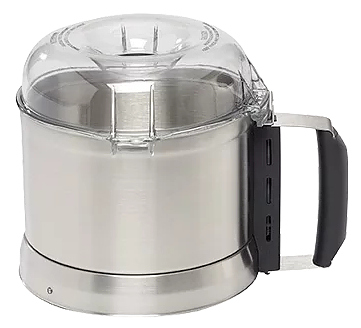 В комплект поставки входит чаша с крышкой 2,9 л, нож с 2 гладкими лезвиями из нержавеющей стали со съёмным колпачком + нож с мелкими зубцами.