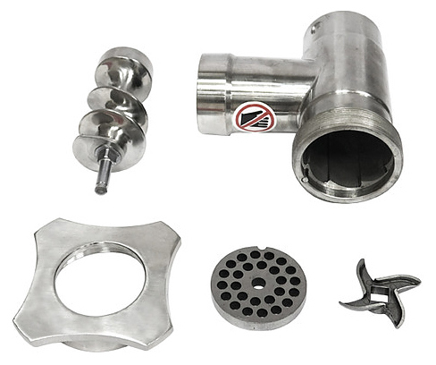 В комплект поставки входят загрузочный лоток, толкатель, 2 ножа, 2 решетки и набор купатниц (15, 20 и 22 мм).