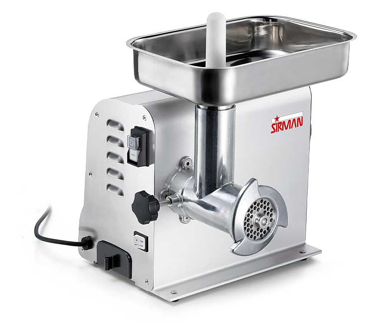 Мясорубка Sirman TC-12 DENVER предназначена для измельчения мяса и рыбы на фарш, повторного измельчения котлетной массы и набивки колбас на предприятиях общественного питания и торговли. Модель оснащена системой вентиляции мотора, обеспечивающей защиту от перегрева. Корпус выполнен из анодированного алюминия, боковые панели — из прочного ABS-пластика, горловина и шнек — из пищевого алюминия, нож и решетка — из нержавеющей стали.
