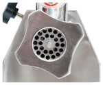 В комплект поставки входят загрузочный лоток, толкатель, 2 ножа и 2 решетки.