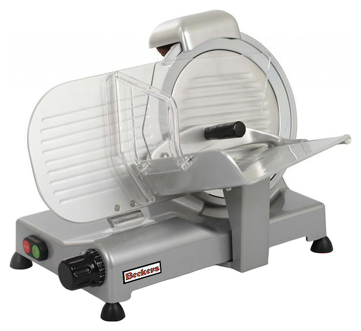 Слайсер BECKERS ES 300 предназначен для нарезки мяса, сыра, колбасных изделий и других продуктов питания на ровные и равные ломтики на предприятиях общественного питания и торговли. Модель оснащена встроенным затачивающимся устройством, благодаря чему персонал предприятия легко может поддерживать должный уровень остроты ножа. Ручка каретки выполнена из пластика.