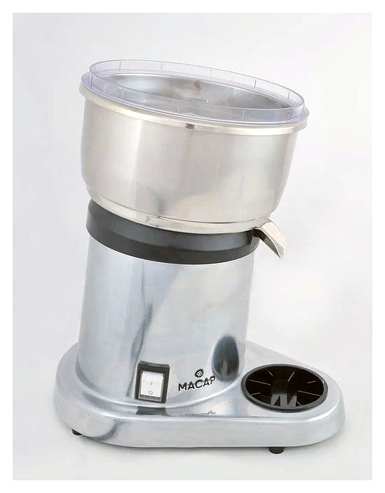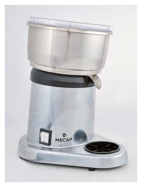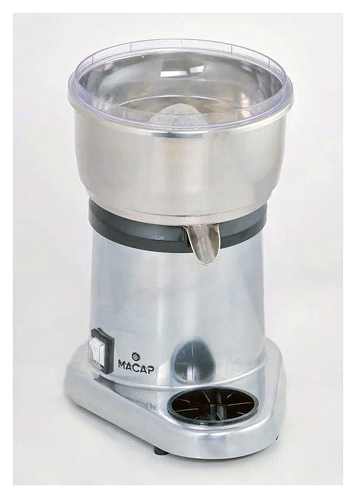 Соковыжималка Macap P200 предназначена для приготовления сока из лимонов, апельсинов, грейпфрутов и других цитрусовых на предприятиях общественного питания и торговли. Модель оснащена фильтром и 2 сменными прижимными конусами: для лимонов и для апельсинов и грейпфрутов. Корпус выполнен из литого алюминия, конусы — из пластика.