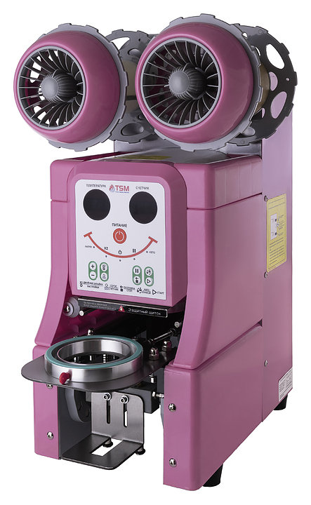 Автоматический запайщик TSM Q10-90/95 используется на предприятиях пищевой промышленности, общественного питания и торговли для герметичного запечатывания термосвариваемой пленкой круглых стаканов с горячими и холодными напитками, готовыми блюдами, полуфабрикатами, фруктами и другой пищевой продукцией. Модель оснащена выдвижной рабочей матрицей, панелью управления с мембранной клавиатурой, светодиодными лампами и цифровыми дисплеями индикации. Корпус выполнен из стали с антикоррозийным покрытием розового цвета, направляющие — из нейлона, ножи — из высококачественной японской стали.