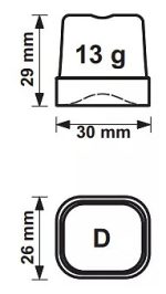 - D (30x26x29 мм) — 13 грамм