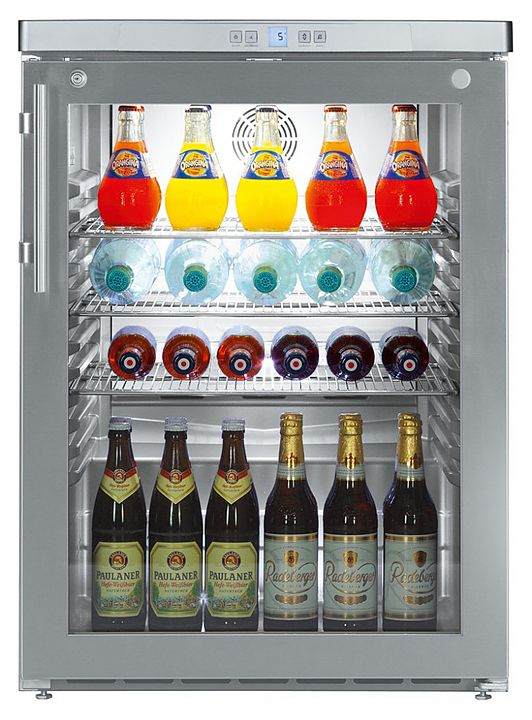 Холодильный шкаф Liebherr FKUv 1663 предназначен для охлаждения и кратковременного хранения скоропортящихся продуктов и напитков на предприятиях общественного питания и торговли. Модель оснащена электронным управлением и цифровой индикацией температуры. Внутренняя прокладка выполнена из серого полистирола, корпус и ручка — из нержавеющей стали, дверь — из двойного стекла, решетки — из металла с порошковым покрытием.