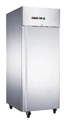 Морозильный шкаф Tatra TRC500 BT предназначен для кратковременного хранения предварительно замороженных пищевых продуктов на предприятиях общественного питания и торговли. Модель оснащена морозильной камерой с правосторонней глухой распашной дверью, встроенным компрессорным холодильным агрегатом и расположенным на верхней фронтальной панели электронным контроллером с цифровым дисплеем индикации. Вертикально ориентированный корпус выполнен из высококачественной нержавеющей стали, задняя стенка — из оцинкованной стали.