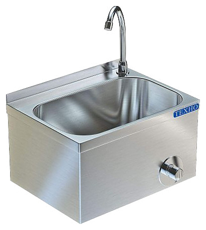 Рукомойник Техно-ТТ ВМ-12/301 используется в моечных цехах на предприятиях общественного питания и торговли. Модель оснащена коленным выключателем и изливом. Сварной каркас выполнен из нержавеющей стали AISI 430, цельнотянутая мойка — из нержавеющей стали AISI 304.