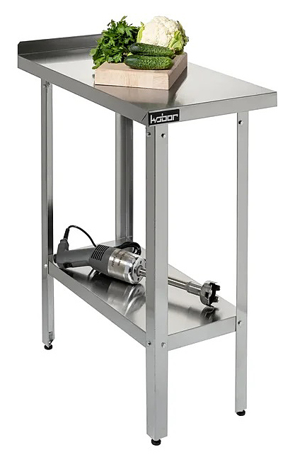 Столешница стола Koбор СПБ-120/60/430 используется на предприятиях общественного питания и торговли для разделывания и обработки пищевых продуктов, а также в качестве вспомогательной поверхности для кухонного оборудования. Каркас выполнен из уголка нержавеющей стали, столешница и полка — из нержавеющей стали AISI 430, столешница укреплена листом ламинированной древесностружечной плиты с внутренней стороны.