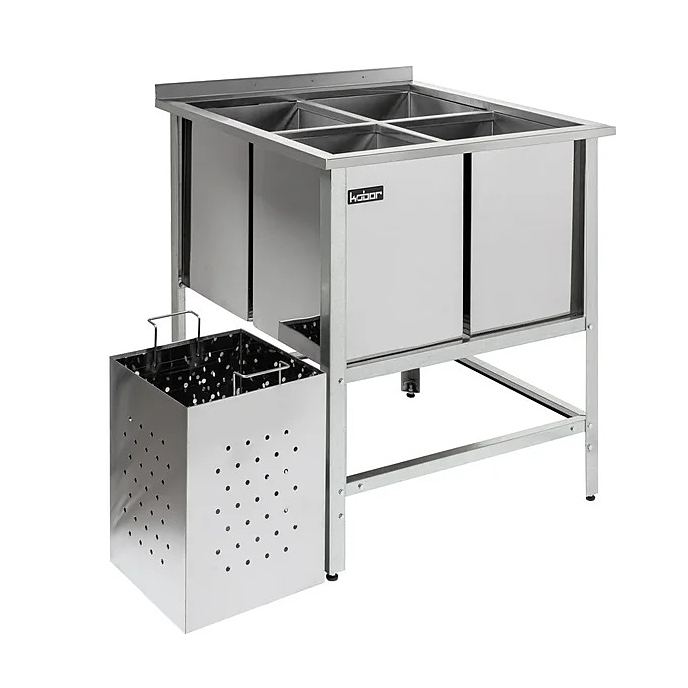 Моечная ванна Кобор ВМЯБ/1-70/70/430 предназначена для санитарной обработки яиц на предприятиях общественного питания и торговли. Сварной каркас выполнен из нержавеющего стального уголка, раковины — из нержавеющей стали AISI 430.