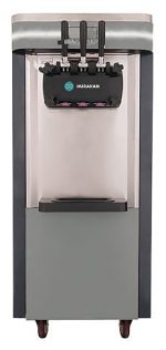 Фризер для мороженого Hurakan HKN-BQ66FPS используется на предприятиях общественного питания и торговли для производства мягкого мороженого путем смешивания сухой смеси с молоком или водой и осуществления ряда автоматизированных процессов (охлаждение, взбивание и т.д.). Модель оснащена электронной системой управления, помпой подачи воздуха в продукт, 3 дозаторами и колесами. Корпус выполнен из крашеного металла.