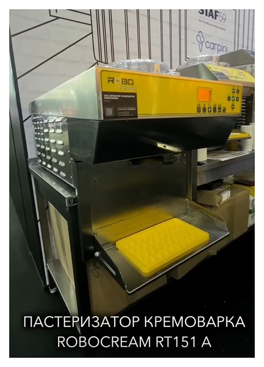 Пастеризатор-кремоварка ROBOcream RT151 A используется для приготовления кремов, заварного теста, конфитюра, джема, мармелада, соусов, плавления шоколада, а также пастеризации смеси для мороженого на предприятияx общественного питания и торговли. Пастеризация снижает бактериальную обсемененность сырья и свежих полуфабрикатов без ухудшения органолептических и питательных свойств продуктов. Модель оснащена регулируемой скоростью вращения, инвертором и электронным контроллером с датчиком. Прозрачная двойная крышка с датчиком остановки вращения мешалки позволяет контролировать трансформацию смеси и безопасно загружать ингредиенты при работающей мешалке. Корпус выполнен из нержавеющей стали.