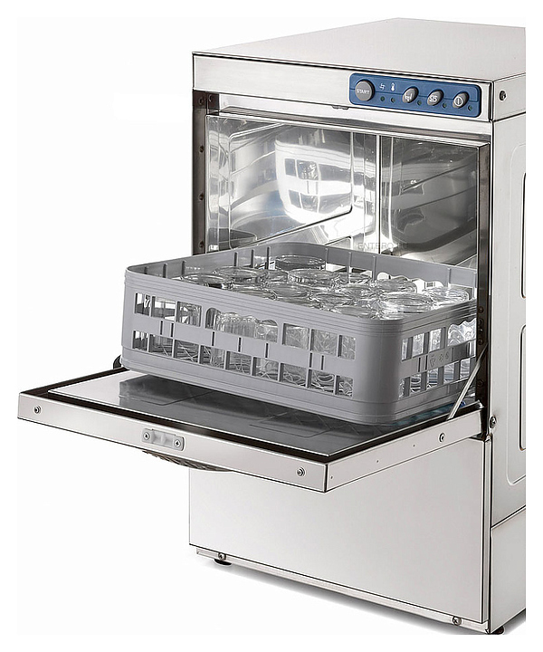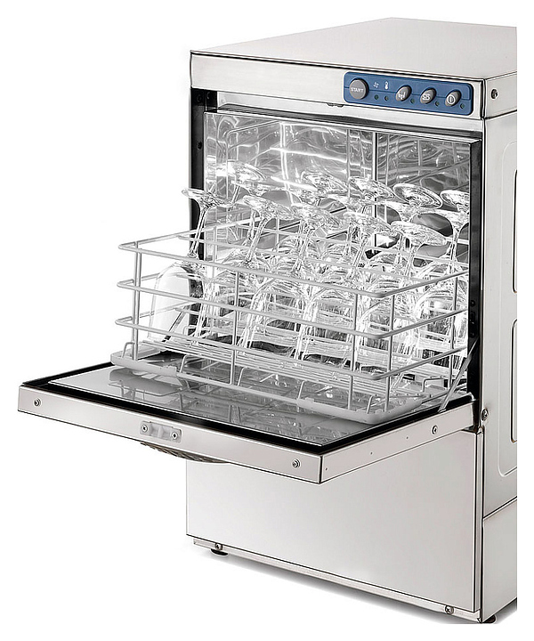 Стаканомоечная машина Dihr DS 40 DDE+PS используется в барах, ресторанах и гостиницах для мойки стаканов, чашек, небольших тарелок и столовых приборов. Модель оснащена шумо- и теплоизолирующей дверцей с двойными стенками и защитным микровыключателем. Корпус выполнен из нержавеющей стали AISI 304.