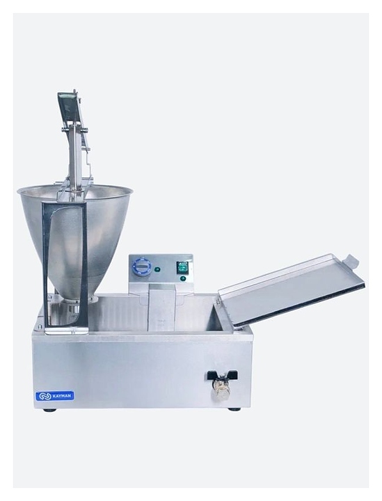 Пончиковый аппарат KAYMAN ПА-200-34 А используется на предприятиях общественного питания и торговли для формирования и приготовления в разогретом масле пончиков традиционной формы. Модель состоит из фритюрной ванны, ручного дозатора, блока управления с электронагревателем и поддона для выкладки пончиков со специальными отверстиями для стекания излишков масла. Все части аппарата выполнены из пищевой нержавеющей стали AISI 430.