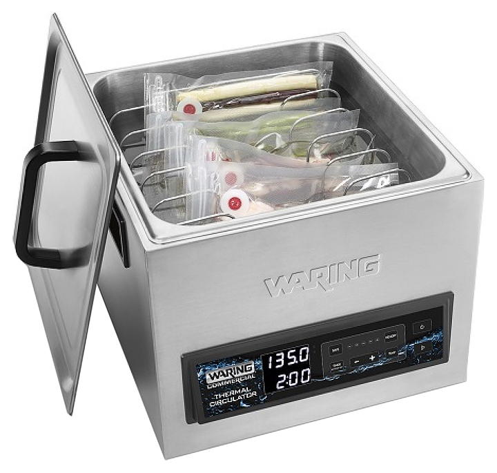 Аппарат Sous Vide Waring WSV16E используется на предприятиях общественного питания и торговли для приготовления блюд по технологии Sous Vide, придавая им нежнейший вкус и сохраняя все важные микроэлементы продуктов. Особенность данного оборудования состоит в том, что продукты перед непосредственным приготовлением помещают в упаковку, из которой полностью удаляется воздух. Затем вакуумные пакеты помещают в воду и готовят. Модель оснащена электронной панелью управления и встроенным шлангом для безопасного и простого удаления воды из резервуара. Корпус и ванна выполнены из нержавеющей стали.