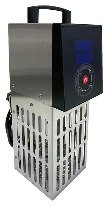 Погружной термостат Tatra TSV2 предназначен для приготовления широкого спектра блюд по технологии Sous Vide на предприятиях общественного питания и торговли. Модель оснащена электронной панелью управления с дисплеем с индикацией рабочей температуры и времени, таймером на 72 часа, зажимом для закрепления на емкости, ручкой для переноски и циркуляционной помпой, обеспечивающей заданную температуру по всему рабочему объему. Корпус и защитный кожух выполнены из нержавеющей стали.