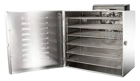 Дегидратор Hurakan HKN-DHD6 предназначен для сушки ягод, фруктов, овощей и грибов на предприятиях общественного питания и торговли. Модель оснащена 6 уровнями решеток и таймером (до 24 часов). Корпус выполнен из нержавеющей стали.