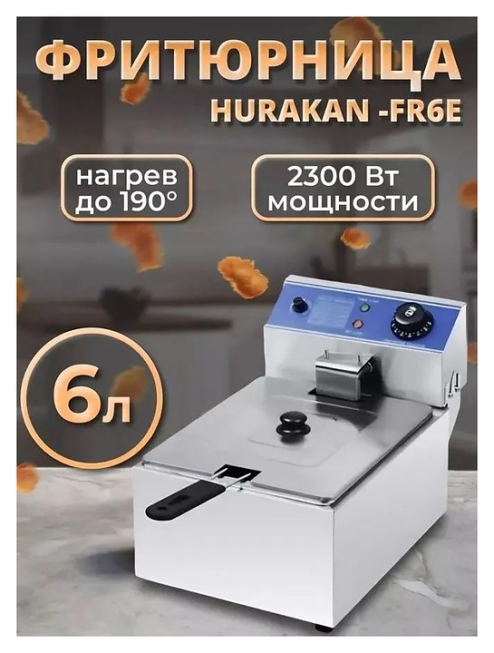 Фритюрница Hurakan HKN-FR6E предназначена для приготовления широкого спектра блюд в большом объеме разогретого до определенной температуры масла или жира на предприятиях общественного питания и торговли. Модель оснащена электромеханической системой управления и регулировкой температуры. Корпус выполнен из нержавеющей стали.
