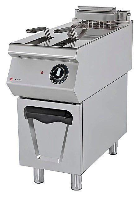 Фритюрница Tatra TEF.49F предназначена для приготовления различных продуктов в большом количестве масла на предприятиях общественного питания и торговли. Модель оснащена механической панелью управления, термостатом и регулируемыми ножками. Корпус выполнен из нержавеющей стали, защищающей от коррозии.