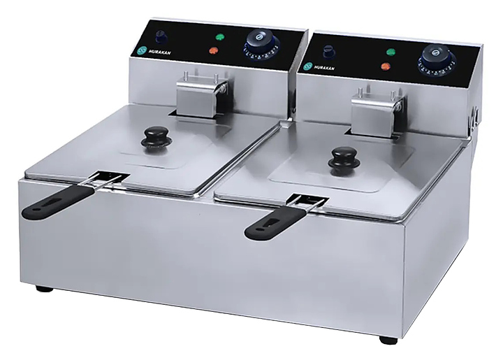 Фритюрница Hurakan HKN-FR66E предназначена для приготовления широкого спектра блюд в большом объеме разогретого до определенной температуры масла или жира на предприятиях общественного питания и торговли. Модель оснащена электромеханической системой управления и регулировкой температуры. Корпус выполнен из нержавеющей стали.