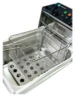 Фритюрница Hurakan HKN-FR6L предназначена для приготовления широкого спектра блюд в большом объеме масла или жира на предприятиях общественного питания и торговли. Модель оснащена электромеханической системой управления, регулировкой температуры и холодной зоной. Корпус выполнен из нержавеющей стали.
