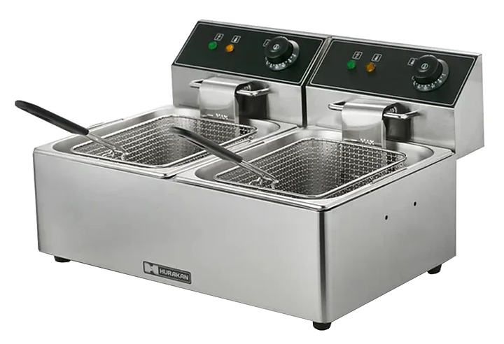 Фритюрница Hurakan HKN-FT44N предназначена для приготовления широкого спектра блюд в большом объеме разогретого до определенной температуры масла или жира на предприятиях общественного питания и торговли. Модель оснащена электромеханической системой управления, регулировкой температуры и холодной зоной. Корпус и чаша выполнены из нержавеющей стали.