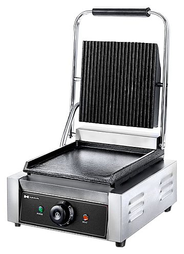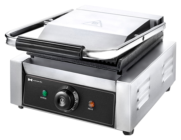 Прижимной гриль Hurakan HKN-FR66L предназначен для обжаривания стейков и сосисок, приготовления сэндвичей, полуфабрикатов, подогрева булочек, гамбургеров, хот-догов на предприятиях общественного питания и торговли. Высокая скорость приготовления достигается благодаря встроенным в обе части аппарата тепловым элементам, которые плотно прилегают к продукту. Модель оснащена регулируемым термостатом, индикатором нагрева и лотком для сбора жира. Корпус выполнен из нержавеющей стали.