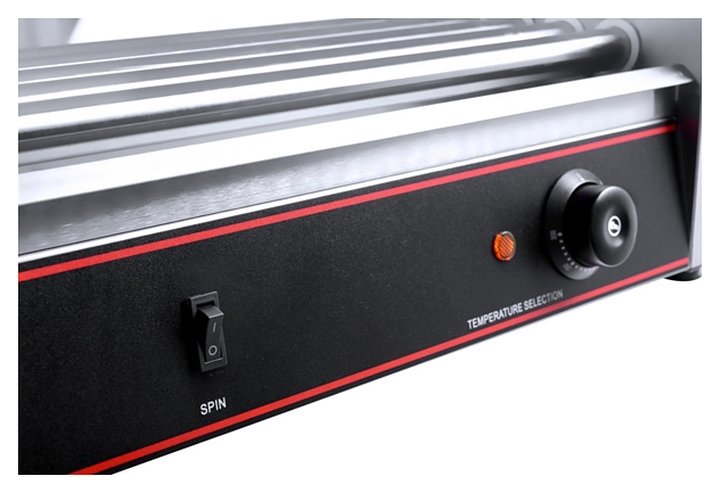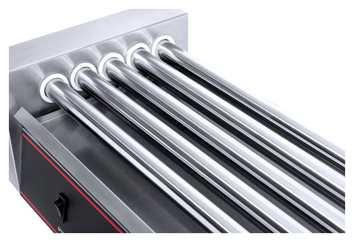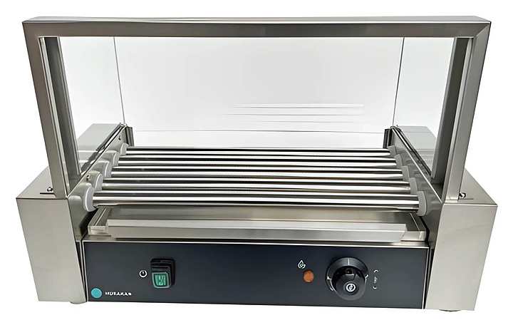Роликовый гриль Hurakan HKN-GW5M предназначен для обжаривания сосисок и сарделек, мясных и рыбных рулетов на предприятиях общественного питания и торговли. Модель оснащена защитным экраном. Корпус и ролики выполнены из нержавеющей стали.