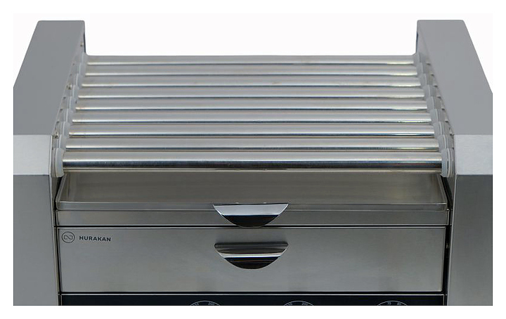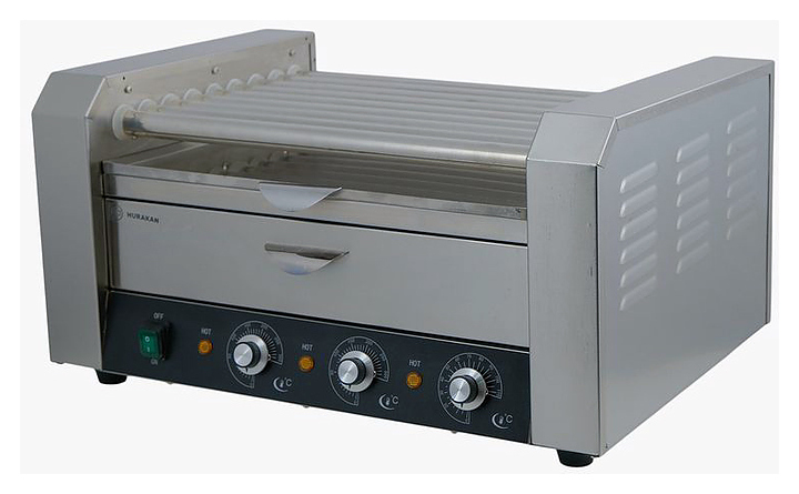 Роликовый гриль Hurakan HKN-GW9H предназначен для обжаривания сосисок и сарделек, мясных и рыбных рулетов на предприятиях общественного питания и торговли. Модель оснащена отделением для подогрева булочек. Корпус и ролики выполнены из нержавеющей стали.