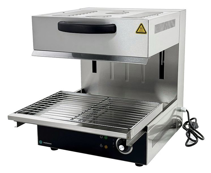 Гриль Salamander Hurakan HKN-SAL450MBM предназначен для обжаривания стейков и сосисок, приготовления сэндвичей, полуфабрикатов, подогрева булочек, гамбургеров, хот-догов и поддержания готовых блюд в разогретом состоянии на предприятиях общественного питания и торговли. Модель оснащена регулятором мощности, индикатором нагрева и поддоном для масла. Корпус выполнен из нержавеющей стали.