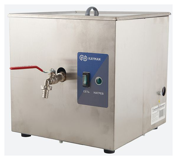 Кипятильник KAYMAN КЭ-01-50 А предназначен для непрерывного нагрева воды и последующего поддержания ее в горячем состоянии на предприятиях общественного питания и торговли. Модель оснащена блоком управления нагревом, исключающим смешивание сырой воды с раздаваемым кипятком. Корпус кипятильника и внутренняя часть изготовлены из нержавеющей стали AISI 430.